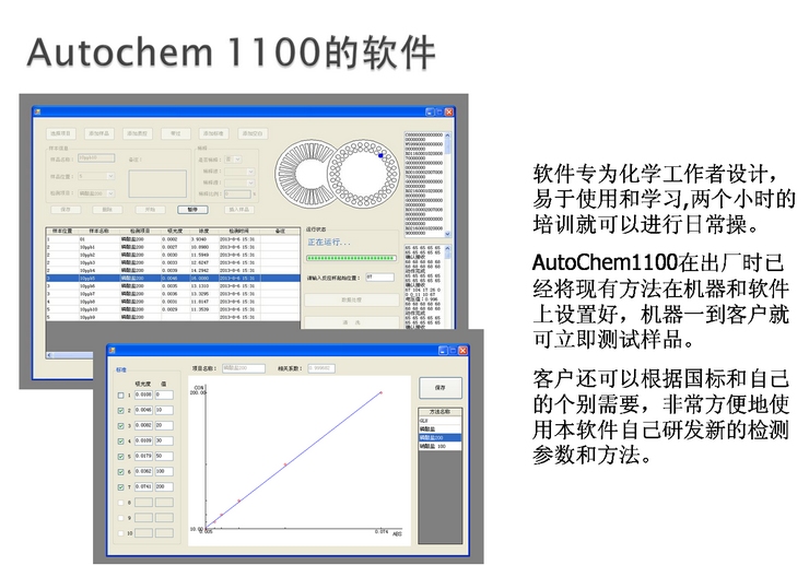 標準溶液:可以放置多達8個標準溶液,標準曲線可以保存并調用, 標準曲線可以線性回歸或多項式回歸處理