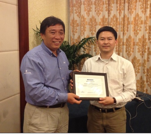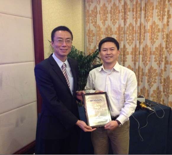 2012年12月3日,上海恒奇儀器儀表有限公司左克唯總經理,受邀參加了美國必能信(BRANSON)在南京湯山舉辦的“2012年必能信全國商業產品代理商大會”,并且接受美國必能信(BRANSON)大中國區銷售總監黃健宏頒發的“2012年華東區優秀代理商獎”,以表彰恒奇公司在2012年所取得優秀的銷售業績。隨后接受了由必能信亞太區產品經理蕭逸群頒發的2013年必能信產品代理證書。