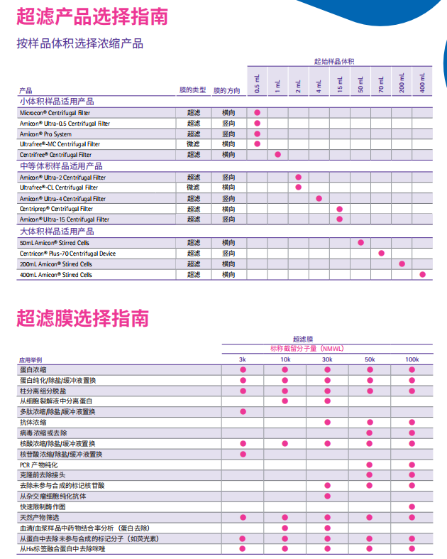 • Amicon Ultra超濾管滿足從0.5-15mL樣本的處理