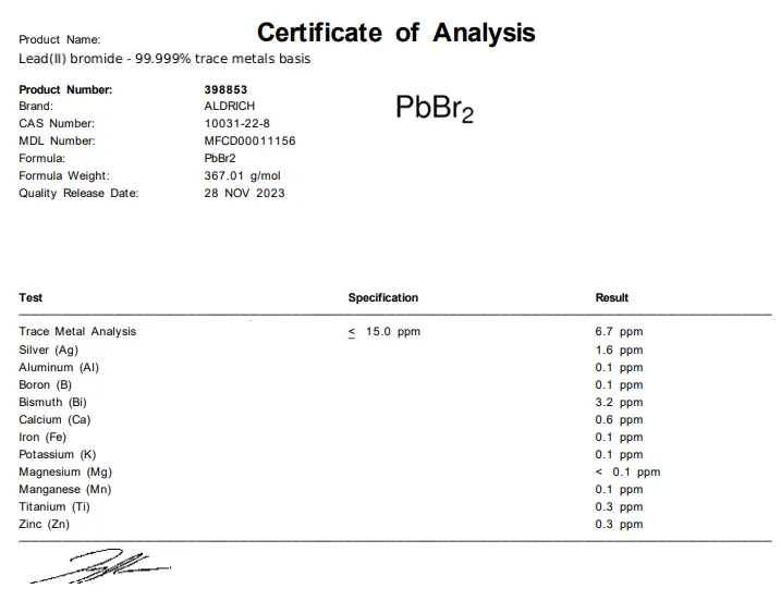 上海恒奇攜手Sigma-Aldrich®致力于讓科研與產業工作者使用高品質的材料,推進鈣鈦礦行業高質量發展。高純金屬鹽是默克(Sigma-Aldrich®)長久以來的明星產品。