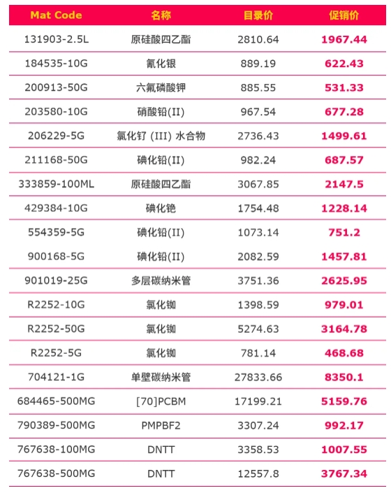 即日起,用于鈣鈦礦和光電的相關產品開啟促銷,完整的促銷清單可咨詢您的銷售
