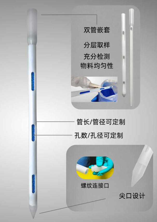 專為粉末類物料采樣設(shè)計的一次性單管穿刺取樣器,采用PP材質(zhì)一體成型,搭配獨立真空袋包裝,確保采樣過程無污染、無交叉風(fēng)險。支持尺寸定制,可精準(zhǔn)截取散裝粉末的橫截面樣本。