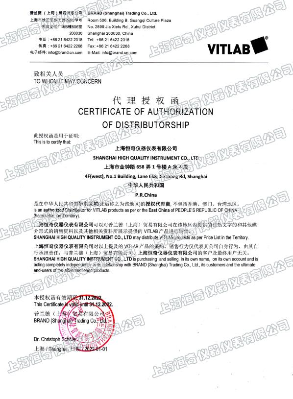 上海恒奇儀器是德國VITLAB的一級授權代理商