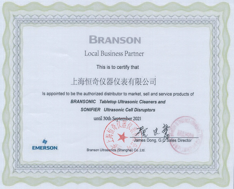 因此,BRANSON必能信公司對恒奇儀器公司高度認可: