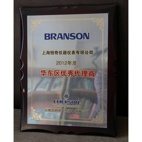 BRANSON必能信公司對恒奇儀器公司高度的認可