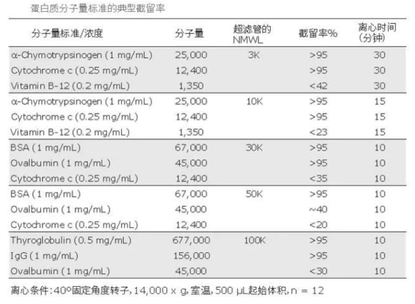 截留分子量選小啦!看到這個表,你是否發現原來抱怨Millipore超濾管流速偏慢的根源來自對于Millipore截留分子量定義的誤解。膜孔徑要小于目的分子這是第一原則。如果分子有近似球形的立體結構(而非明顯的線性分子),在Millipore再生纖維素超濾膜體系內,選擇“等于”或“略小于”目的分子的截留分子量的超濾管是最佳選擇,這樣操作起來又快又好,既保證了樣品回收率,又縮短了離心時間,大幅降低大分子損傷風險。