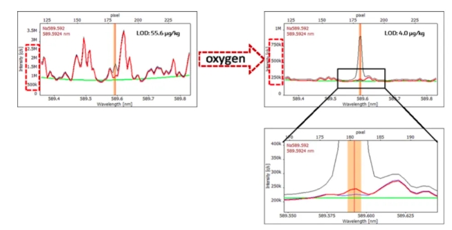 為了能進一步對樣品中陽離子濃度準確定量,耶拿公司采用無水乙醇:水1:1稀釋體系,并對樣品僅稀釋5倍,并且標準曲線均從0.02mg/L開始測試,以保證低含量測試準確性。