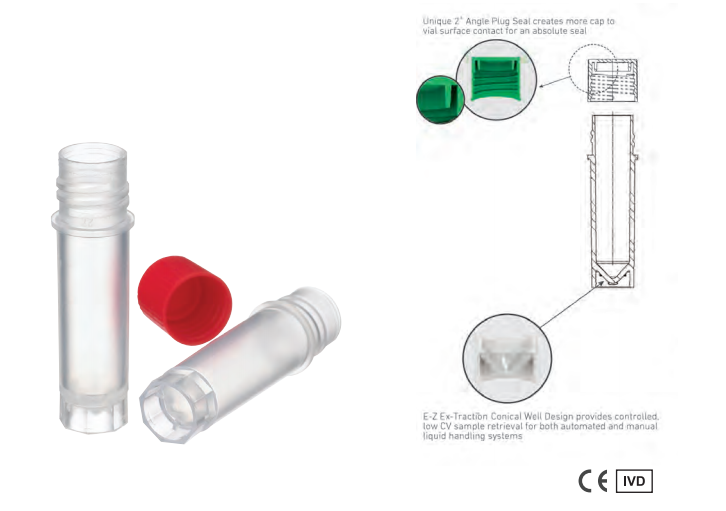 瓶蓋密封性遠超了DOT和IATA法規標準,確保了在運輸和嚴苛的冷凍解凍處理過程中對樣品的保護;